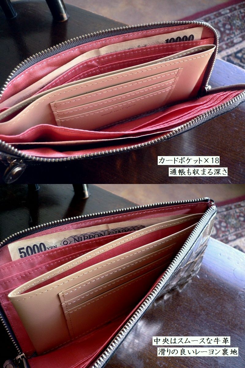 カードポケット×18 ORTICOが得意とするL字ファスナーで 中央のコイン室はファスナーレス。