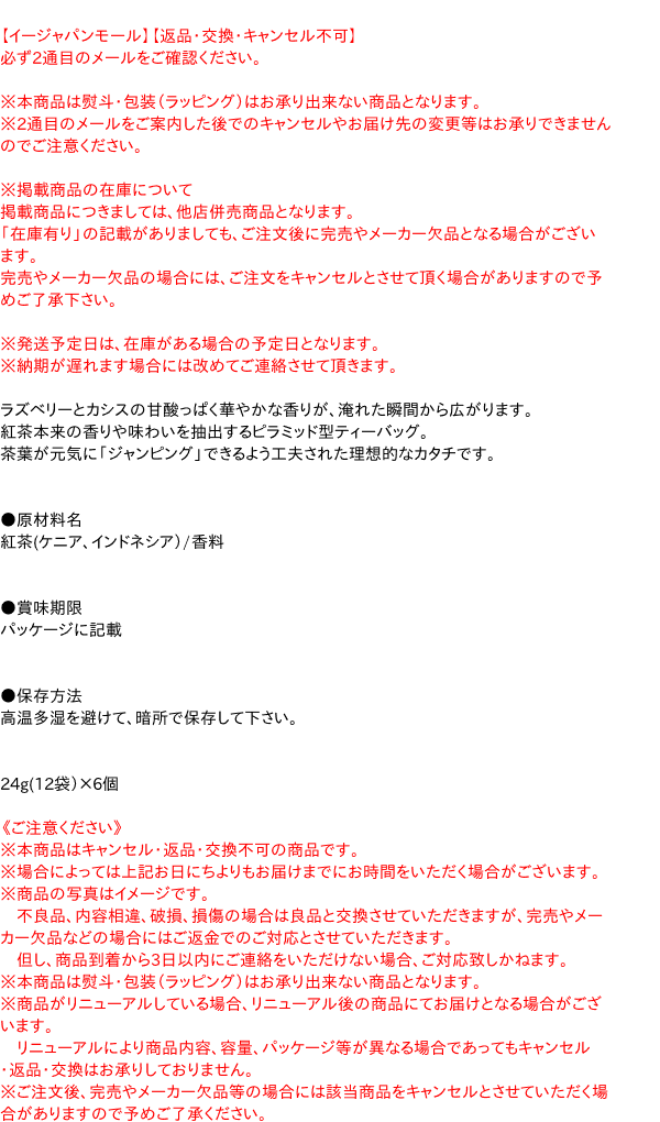 ●原材料名 紅茶(ケニア、インドネシア)/香料 ●賞味期限 パッケージに記載 ●保存方法 高温多湿を避けて、暗所で保存して下さい。