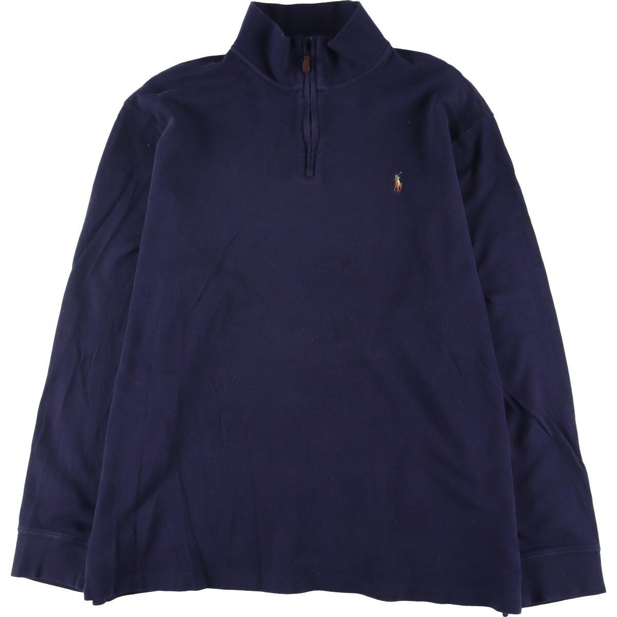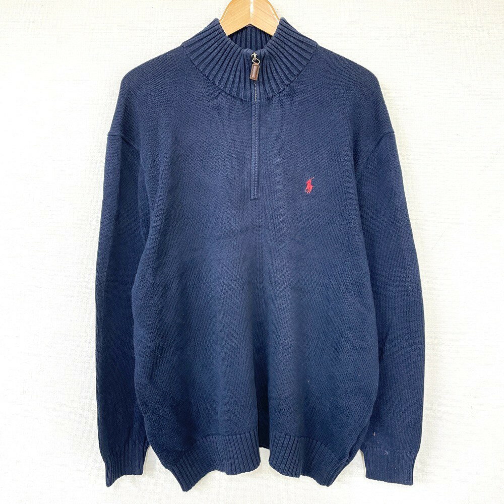 ラルフローレン ブランドニット サイズ表記 M ネイビー Ralph Lauren ワンポイント ハーフジップ ボーダー 刺繍 ロゴ 紺 白 ホワイト 古着【中古】wv2101-0630