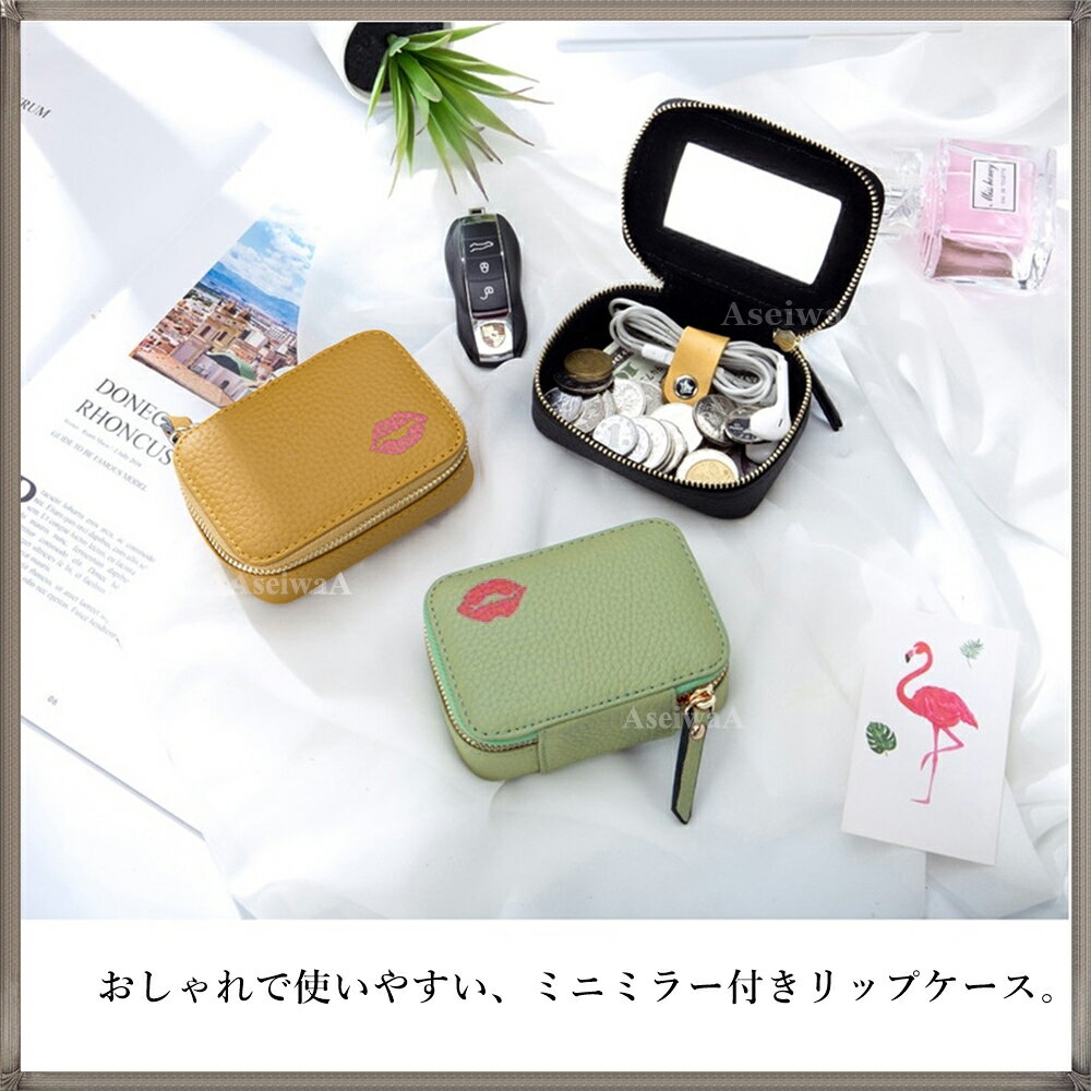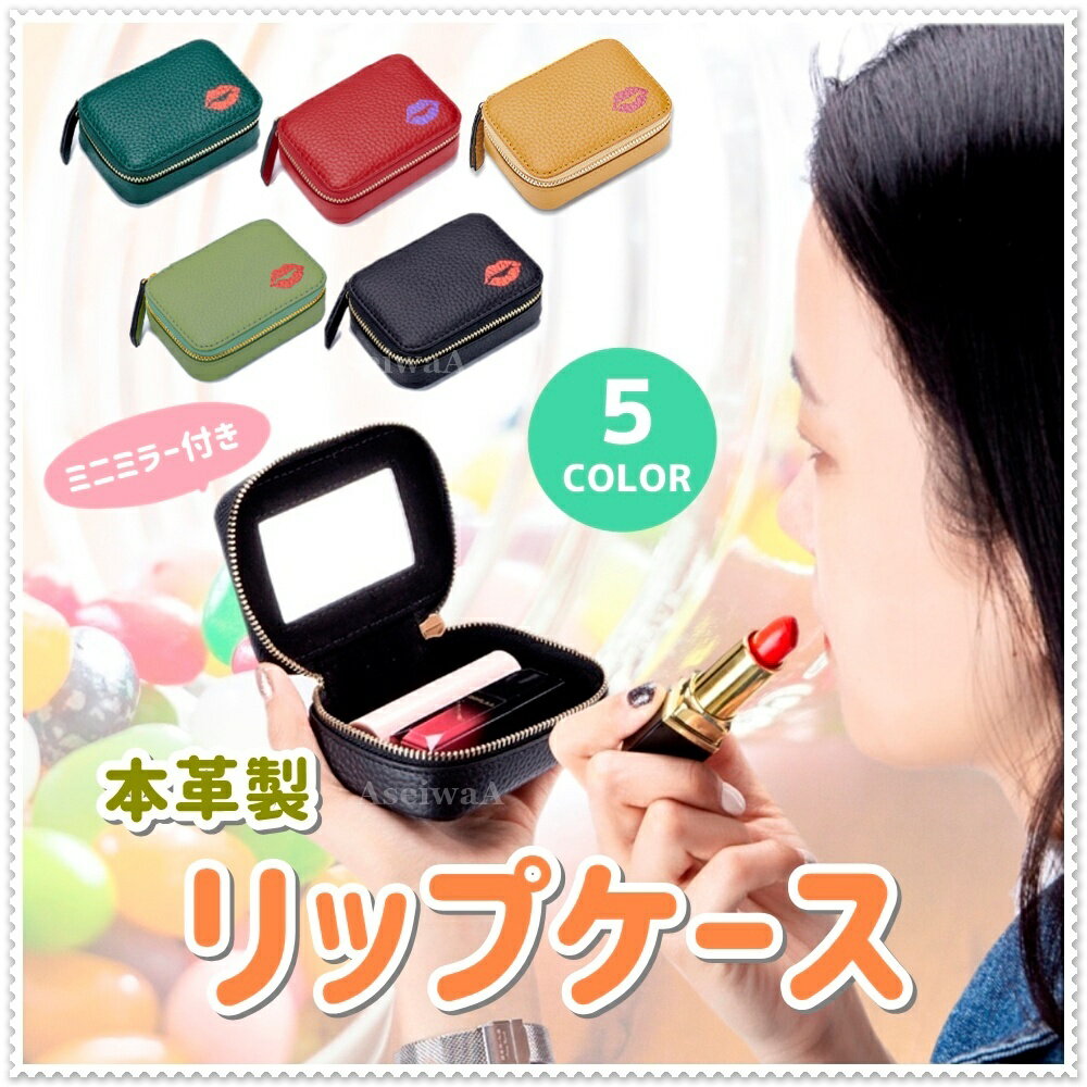 レディース 本革 リップケース ミニ ポーチ ミラー付き コインケース かわいい オシャレ 全5色 CL-888-2 ポイント消化